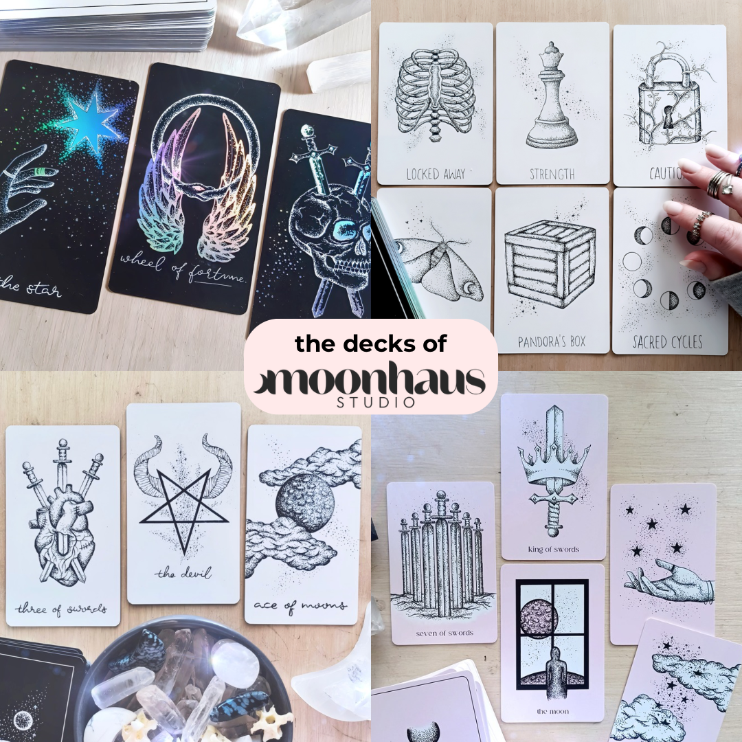 Hand-drawn and soul-led tarot & oracle decks, printables for shadow work, planning, chronic wellness tracking, creativity, slow living, and more.