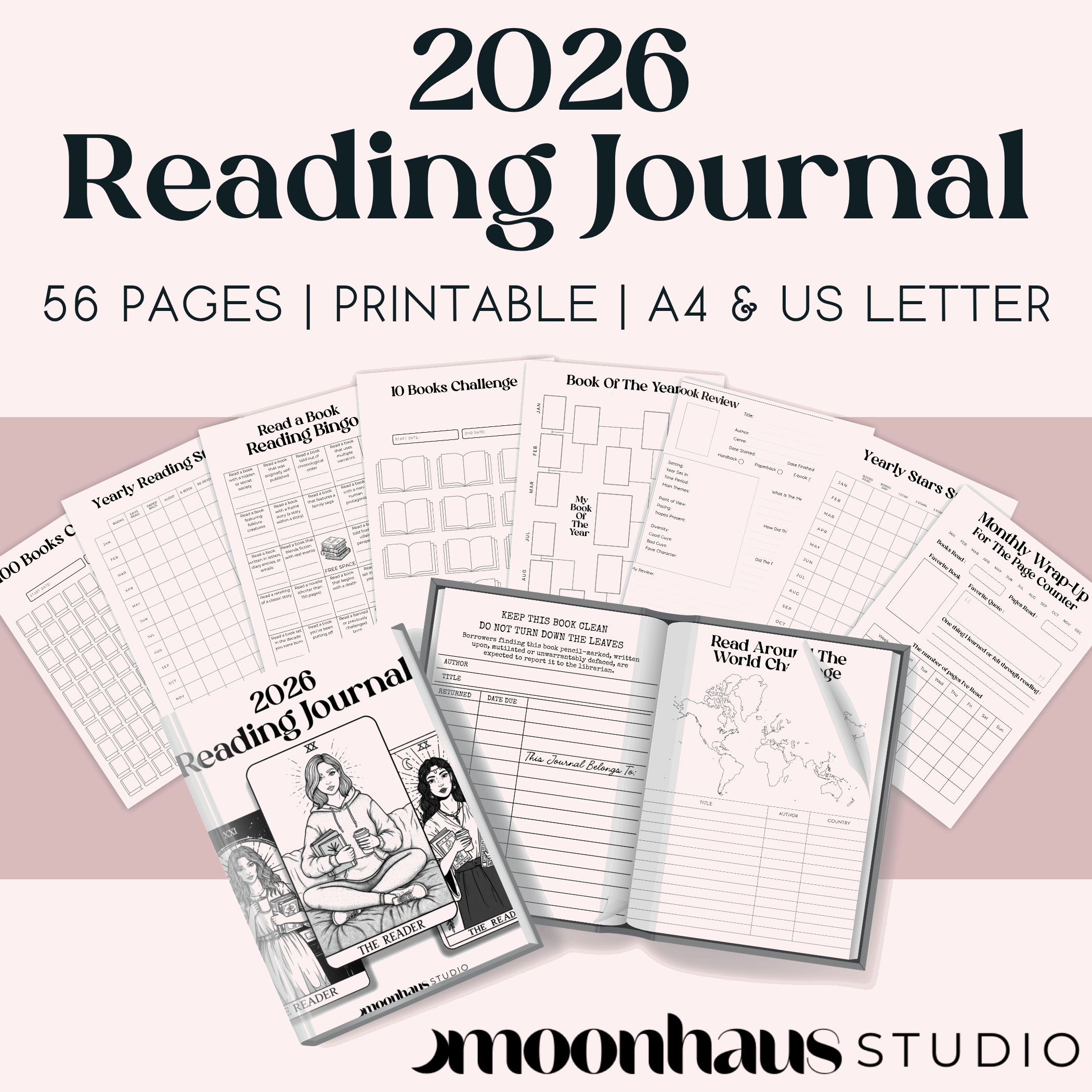 2026 Reading Journal, Diary + Planner | Digital + Printable | 56 pages, A4 + US Letter