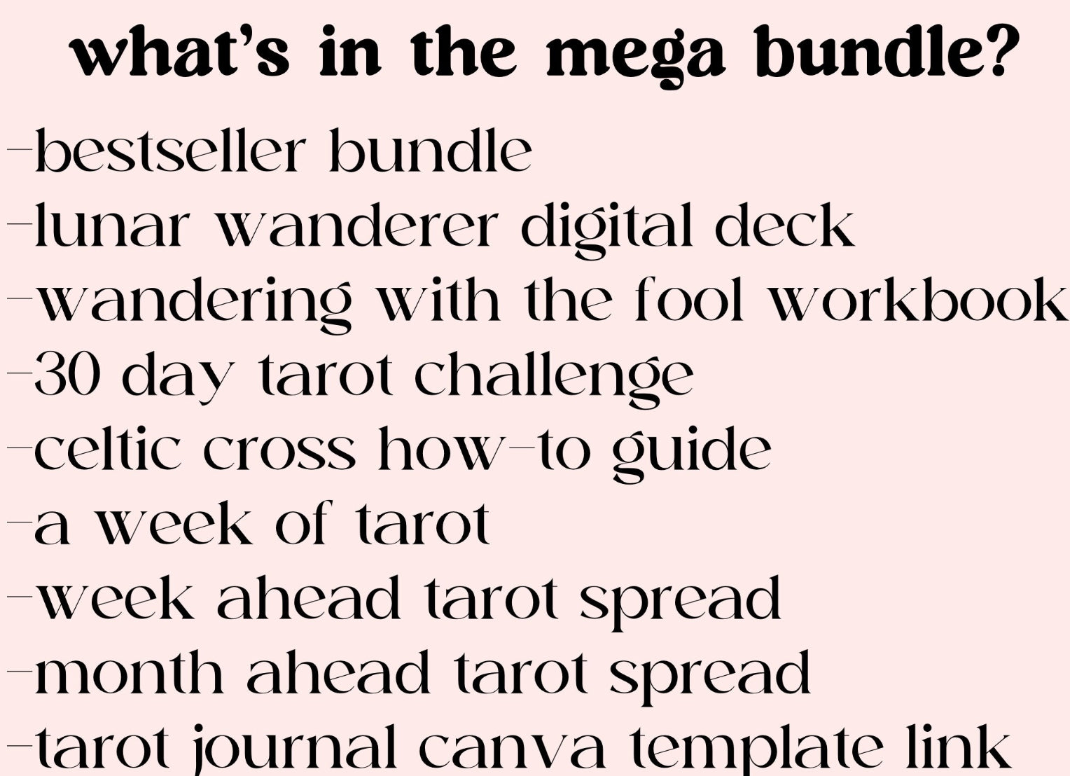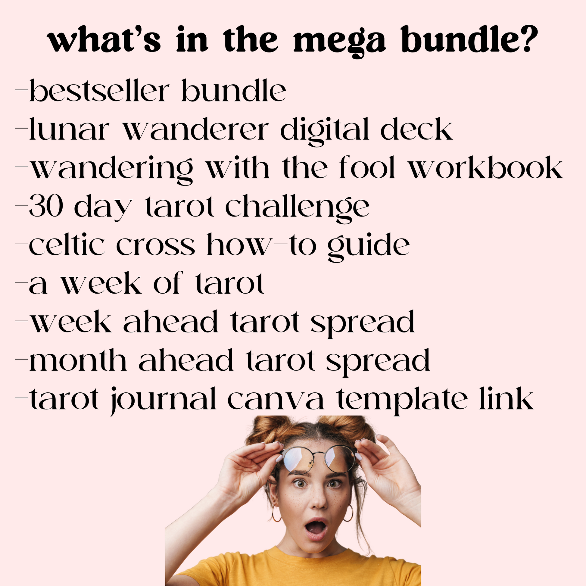 mega tarot bundle set - tarot cheat sheets, tarot readings, workbooks, journals, tarot spreads, digital tarot decks