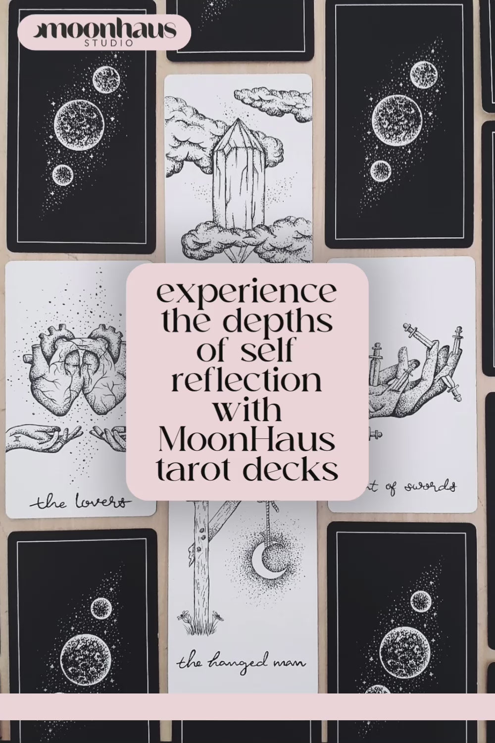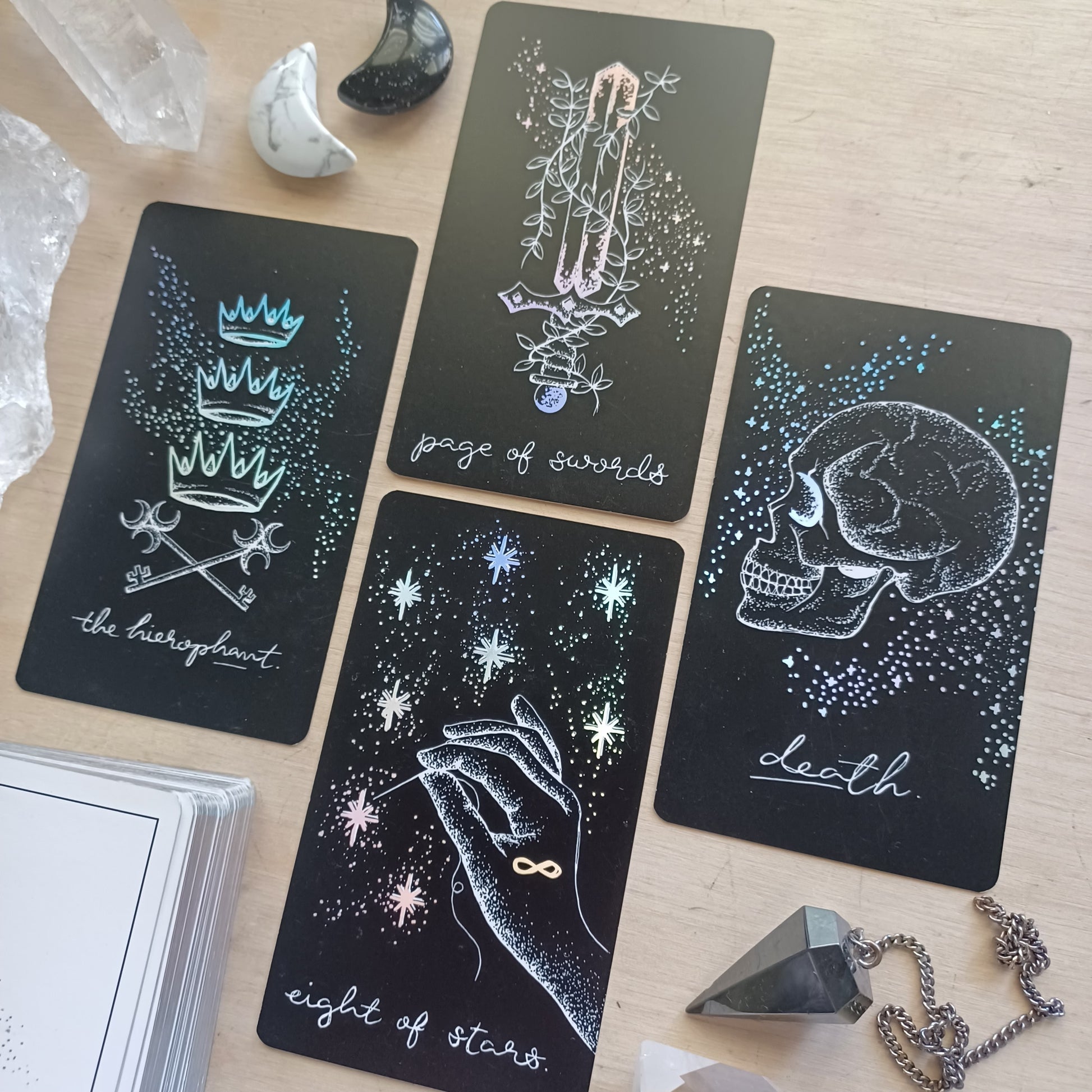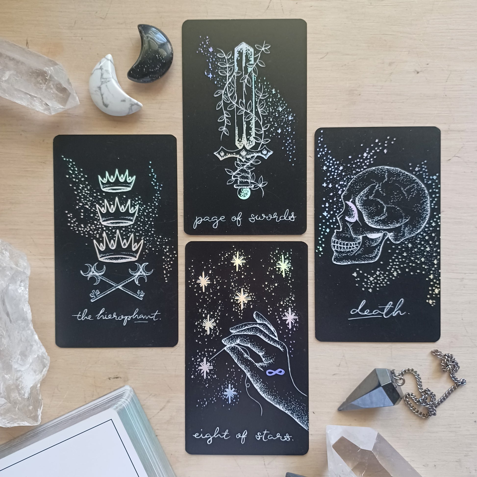 a tarot deck bundle set: unique, indie tarot divination decks, hand drawn tarot cards, with tarot deck guidebooks & holographic gilding
