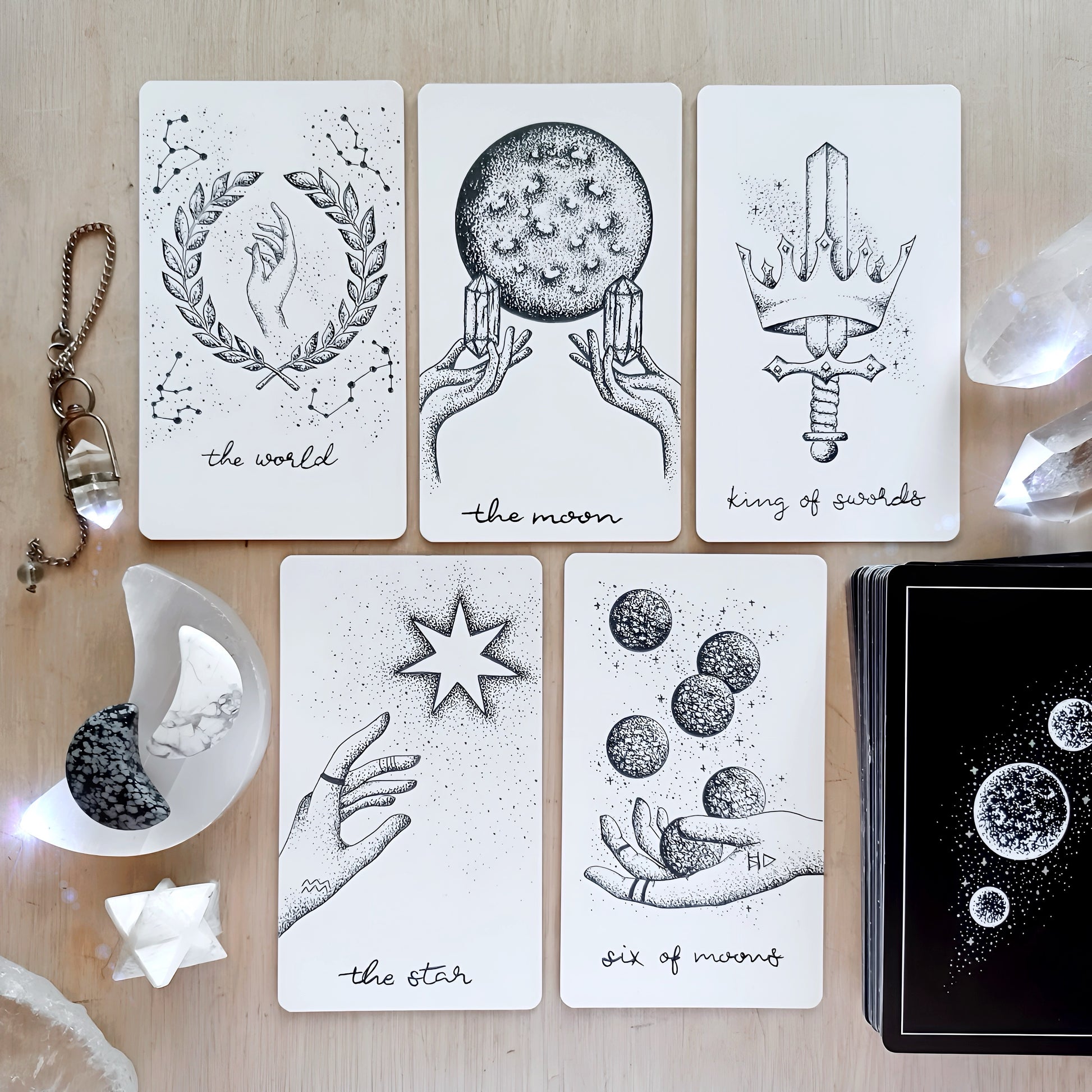 - 3 unique major arcana cards: The New Moon, The Full Moon, and The Wanderer