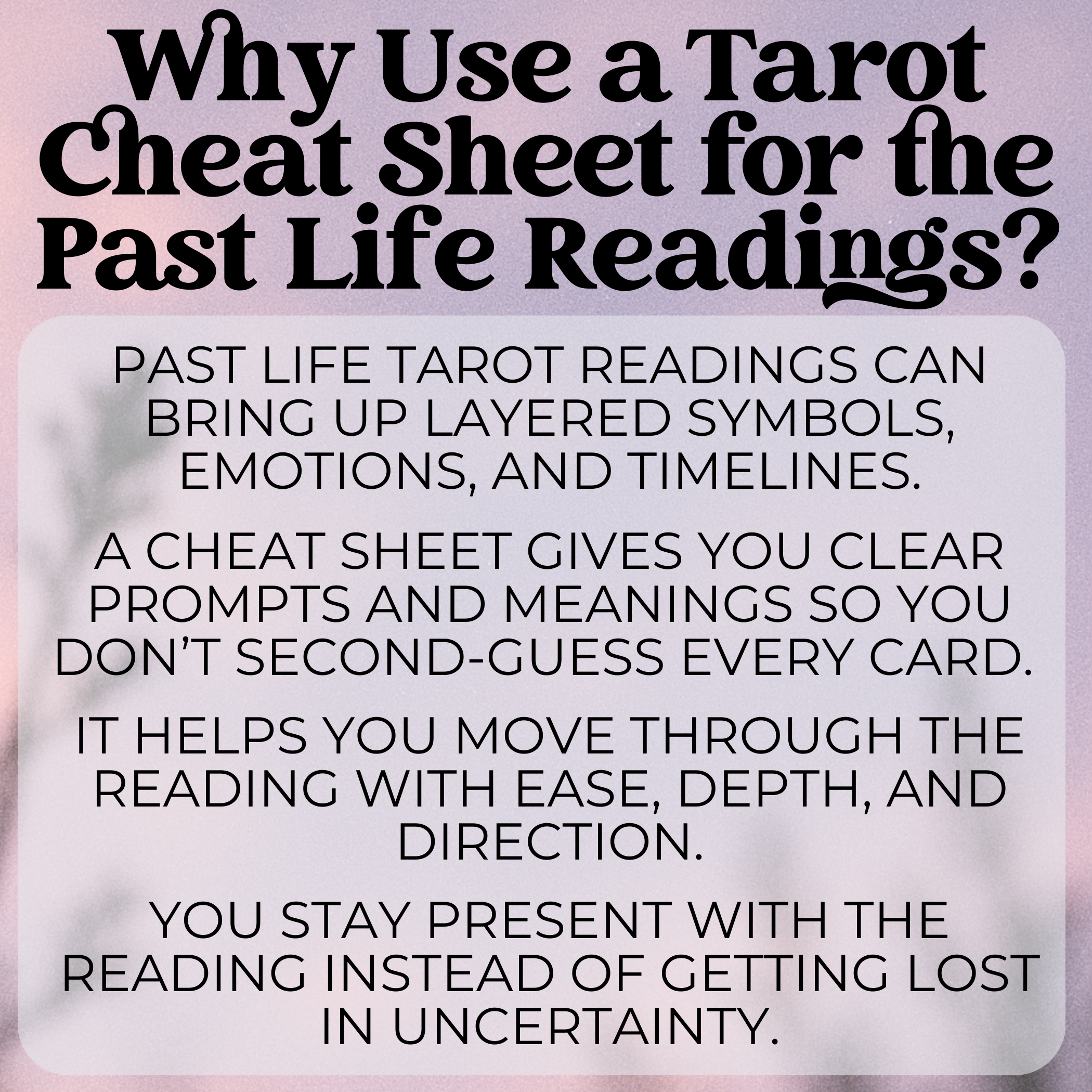 ✨ If you’re drawn to past life themes and want a tarot tool that feels clear, calm, and genuinely supportive, this cheat sheet set was created for you — with intention, care, and real-world use in mind.
