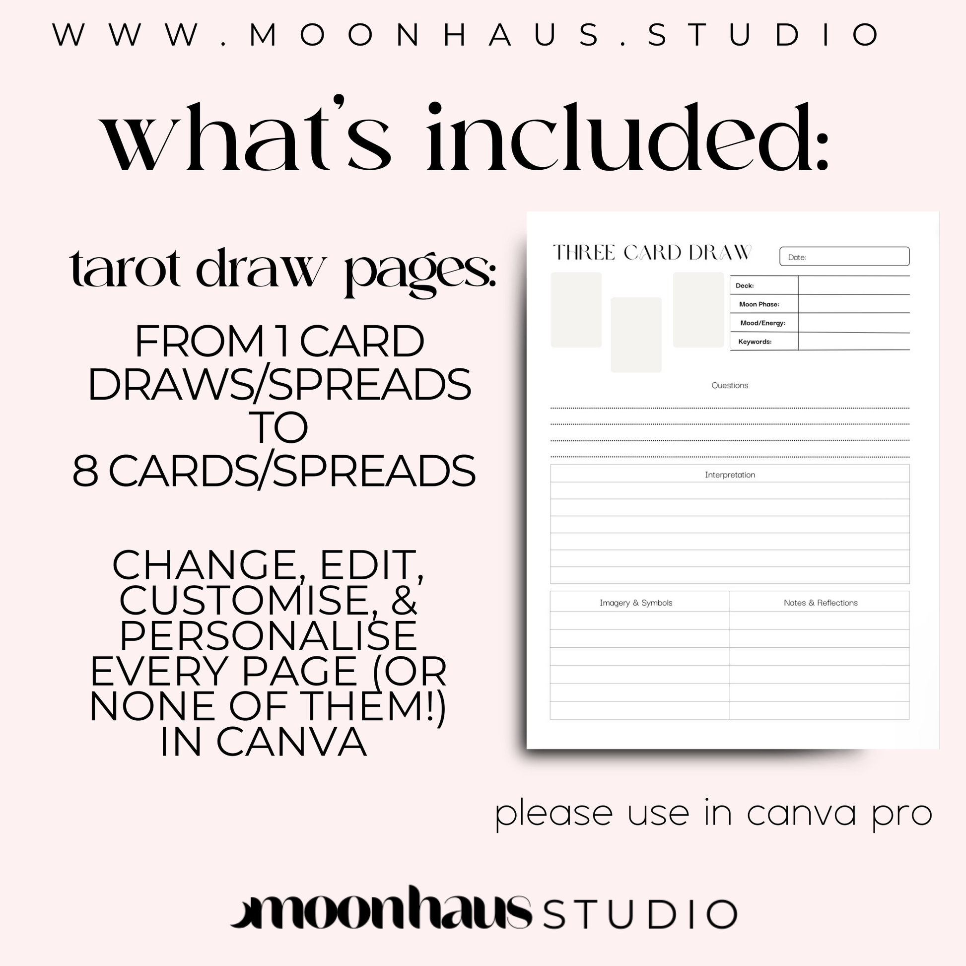 👉🏻 if you don’t have the Pro features, but want a tarot journal to edit within Canva, please check out this listing:
